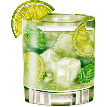 White Rum, Lime Juice, Mint Leaves, Soda Water, Sugar, Pomegranate Seeds